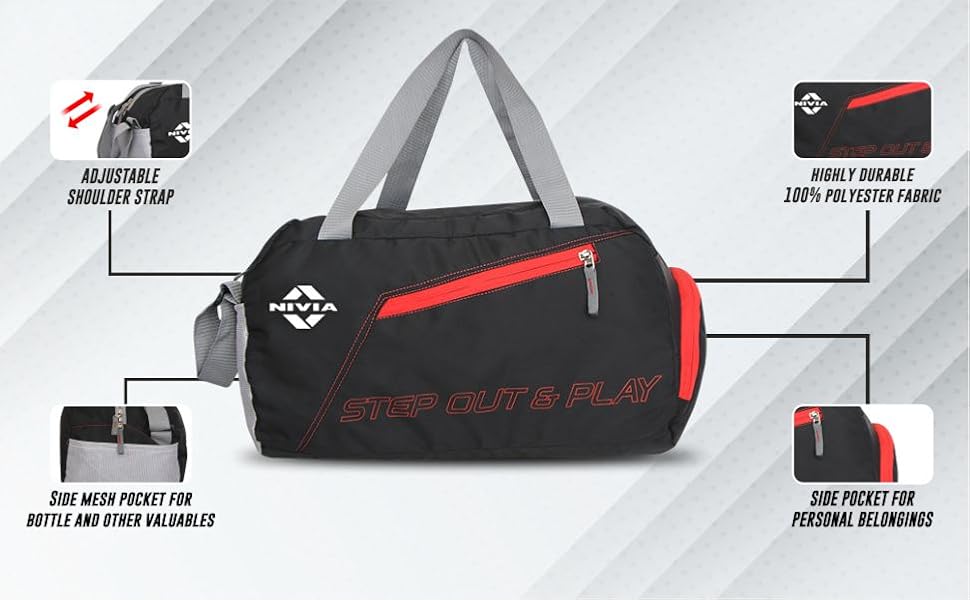 Niva Sportspace 2 0 Polyester Duffle Bag For Men Women Gym Bags With Adjustable Shoulder Strap Fitness Bag Black Red Amazon In Bags Wallets And Luggage